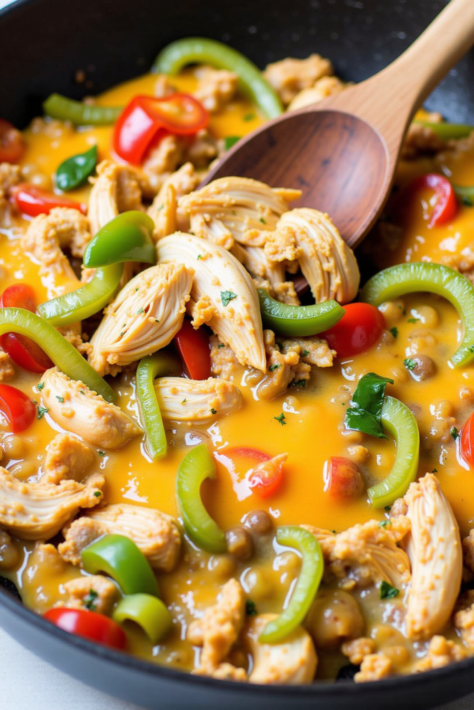 This recipe stands out for its ability to pack all the mouthwatering flavors of a cheesesteak into a quick skillet meal—no rolls required! Juicy chicken, sweet onions, colorful peppers, and an irresistible layer of gooey cheese turn this into a crave-worthy dinner. It’s low on prep, big on taste, and adaptable for low-carb or traditional eaters alike.