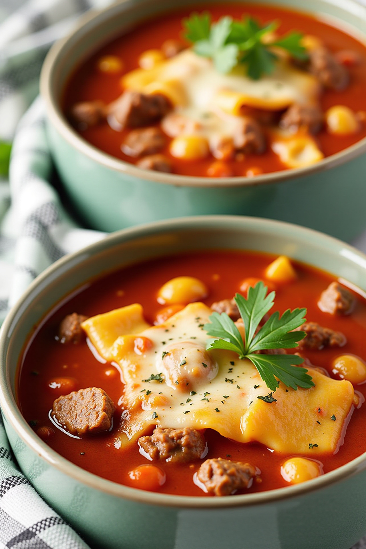 One-Pot Beef Lasagna Soup Introduction One-Pot Beef Lasagna Soup is the answer when you crave lasagna’s savory comfort but want a quick, fuss-free meal that minimizes cleanup. This hearty soup is loaded with classic lasagna flavors—rich ground beef, aromatic Italian herbs, tender noodles, and plenty of melted cheese—all simmered together....