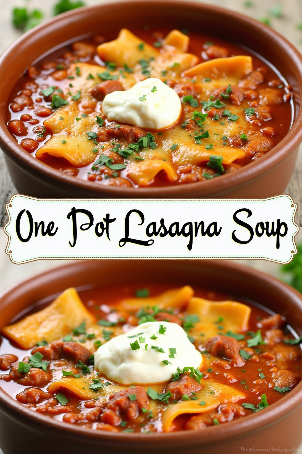 One Pot Lasagna Soup Introduction If you crave classic lasagna but dread the pile of dirty dishes and layers of prep, One Pot Lasagna Soup is your weeknight dinner hero. This cozy, richly flavored soup delivers all the comfort and cheesy, tomatoey goodness of traditional lasagna—with a fraction of the....