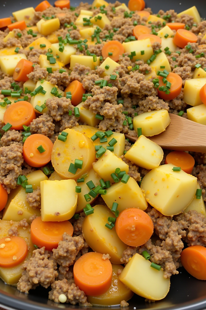 Everything you love about home-cooked comfort food, simplified into a single skillet. The harmony of browned meat, golden potatoes, and bubbling cheese makes this dish a regular request for family meals or friendly gatherings.